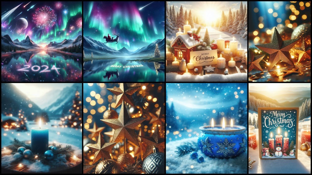 8 pictures AI made, in the theme of Christmas and the new year 2024, format 7k (7000px), format JPG